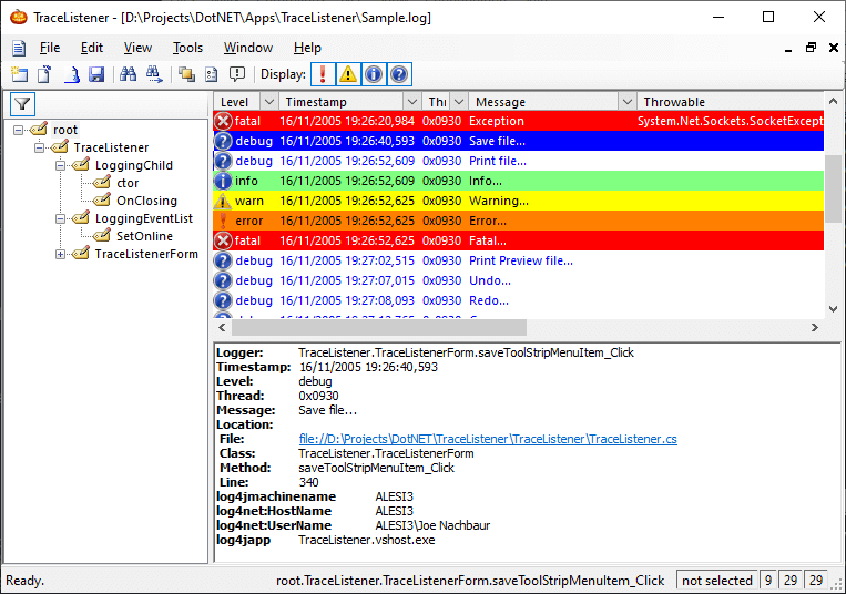 TraceListener Screenshots Main screen Create a new receiver General options Color options View options ❮ ❯